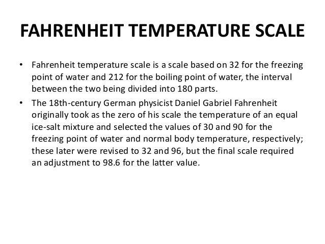 The scale was devised by Gabriel Daniel Fahrenheit an instrument maker of the eighteenth century born in. It is used to tell how hot or cold something is. An example of Fahrenheit used as an adjective is Fahrenheit thermometer the most common thermometer scale used in the United States.